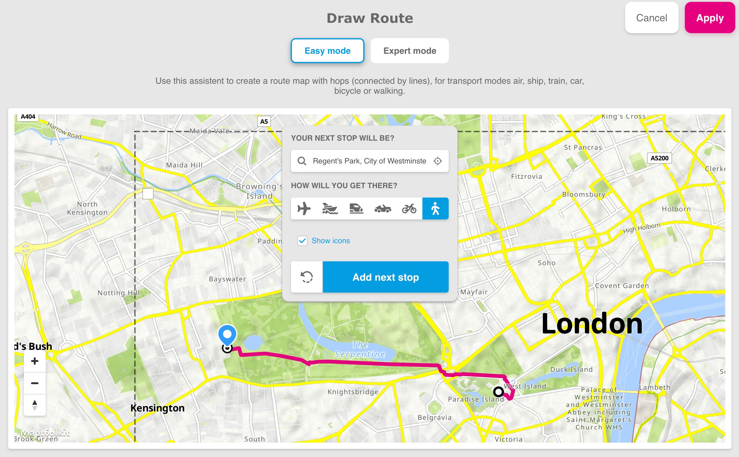 Rota çizim aracımızda 2 mod bulunur: Kolay mod ve Uzman mod.