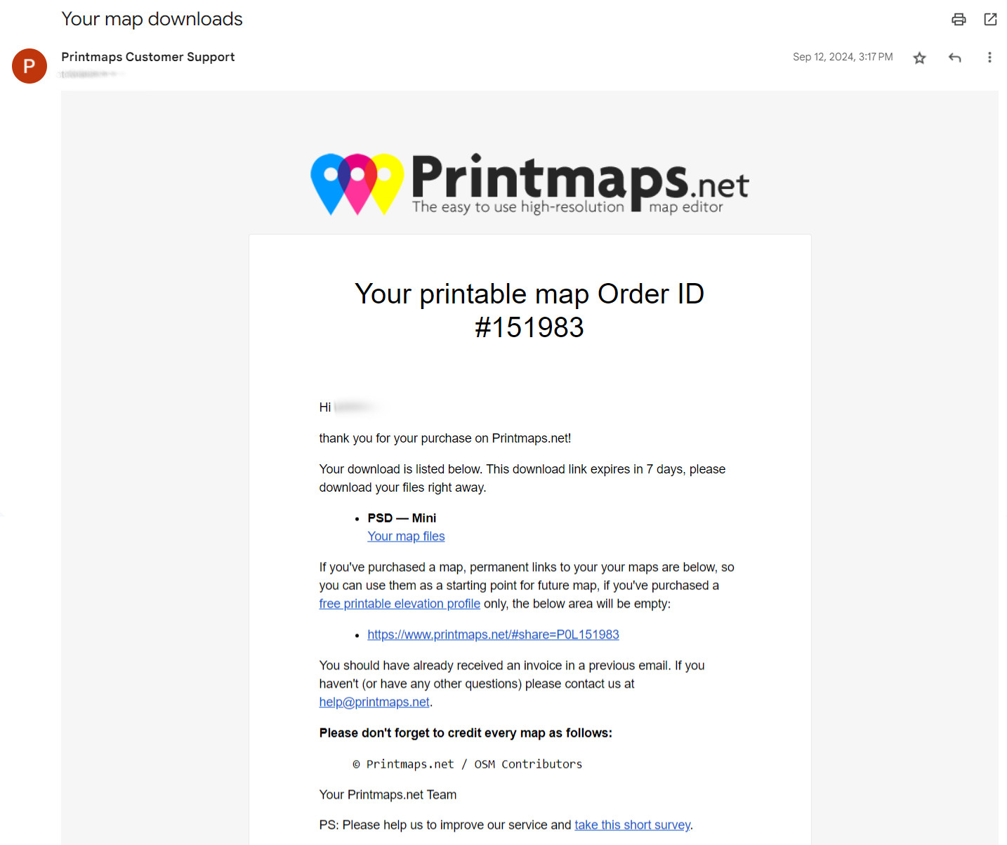 Siparişinizi verdikten sonra haritanız baskı sunucumuza gönderilir ve burada oluşturulur. Haritanızın karmaşıklığına bağlı olarak işlemin tamamlanması 10 dakikaya kadar sürebilir. Ardından haritanızın indirme bağlantısını içeren bir e-posta alırsınız. Dosyalarınızı indirmek için “Harita dosyalarınız” bağlantısına tıklayın.
